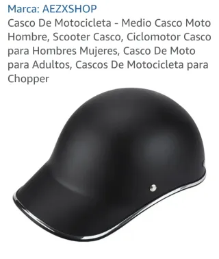 Casco de moto estilo medio, ideal para scooter, ciclomotor o chopper. Diseño clásico y versátil. - Color negro mate. - Acabado con borde cromado. - Cierre de seguridad.