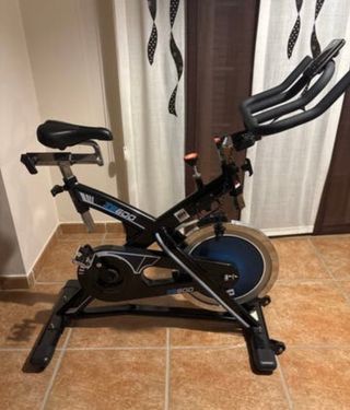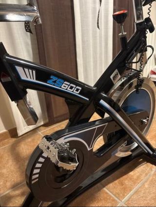 Bicicleta de spinning BH ZS600 en muy buen estado. - Diseño robusto y estable. - Sillín ajustable. - Manillar ergonómico. - Dimensiones: 119 (alto) × 52 (ancho) x 104 (fondo) cm - Peso máximo usuario: 145 kg - Peso producto: 45 kg - Incluye Monitor LCD - Chasis/Estructura: Acero - Peso volante: 22kg - Pedales unisex