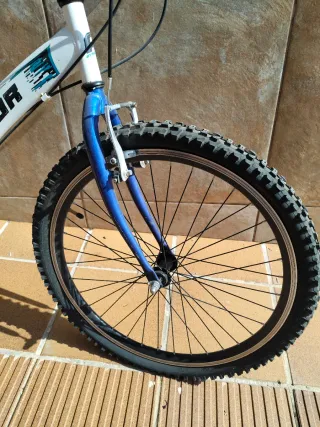Bicicleta de montaña con un diseño llamativo y colores vibrantes. - Cuadro de metal resistente. - Ruedas todoterreno. - Pedales. - Manillar con puños. - Frenos.falta sillin y camara trasera