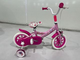 Bicicleta infantil de color rosa, ideal para los más pequeños. - Diseño con flores y personajes. - Ruedines incluidos. - Frenos manuales.