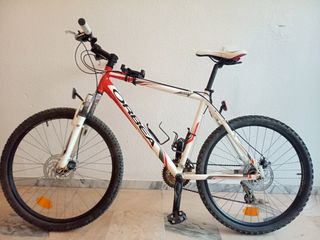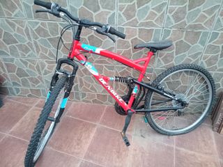 Bicicleta de montaña en color rojo, con muy poco uso. Hay que hacerle una revisión - Cuadro de aluminio. - Suspensión delantera y trasera. - Ruedas de 26 pulgadas.
