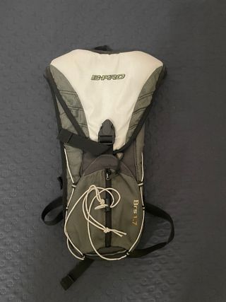 Mochila B-Pro de diseño deportivo, ideal para ciclismo. - Cierre de cremallera y hebilla. - Cordones elásticos frontales. - Bolsillo interior para vejiga de agua