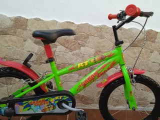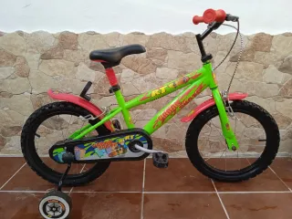 Bicicleta infantil de color verde, ideal para los más pequeños. - Ruedines incluidos. - Guardabarros rojos. - Diseño Urban Skate.
