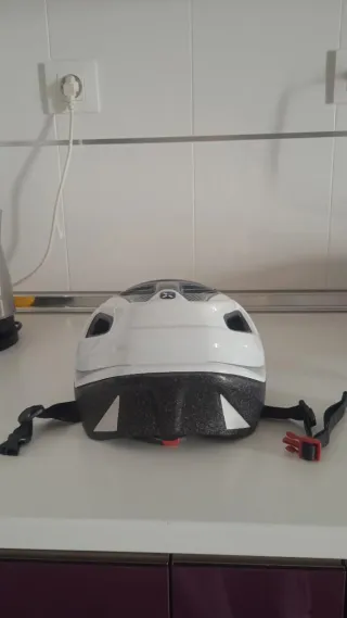 Casco de bici prácticamente nuevo. Talla S (52 a 56 cm). Tiene un pequeño bollo que se ve en la última foto, pero no sé aprecia. Es de Decathlon.