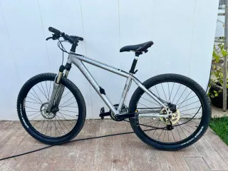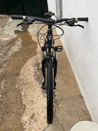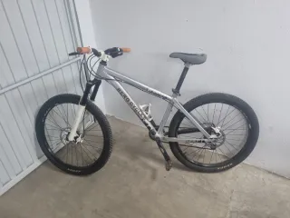 Bicicleta Berg Stuka 9.4 en talla S (15,5 pulgadas). - Cuadro de aluminio punteras ajustables (rueda de 29x2.2 entra justa) - Horquilla delantera sr suntour modifica pasada a 120mm air y ajuste de rebote, bloque en posicion baja. - Ruedas Kenda. 26x2.3 - Pasada a monoplato 1x9 - Plato 32T y bielas deore 175mm - Piñon 9v 11-32 Shimano CS-M760 - Frenos Tektro hidráulicos, manetas ajustables tres dedos. - Discos, del. 180mm tras. 160mm Apenas se a usado los neumaticos que se ve en las fotos son los de serie. Las bielas son de otra bici por eso se ven mas usadas. Se incluye bielas, pedales, guia cadena de plato, piñon shimano CS-HG50-9.