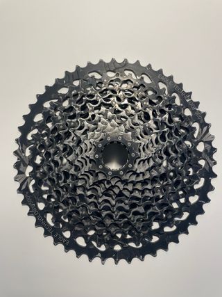 Cassette SRAM GX EAGLE con rango de 10-50 dientes. Funciona correctamente, aunque presenta gran desgaste. Solo podría usarse con otros componentes en igual estado de desgaste.