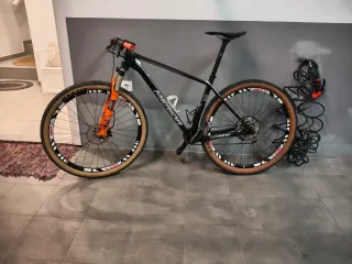 Bicicleta de montaña de 29 Mérida Big Nine 3000 con componentes Shimano. - Cuadro de carbono talla L - Horquilla fox 32 - Frenos de disco hidráulicos XT - Ruedas gurpil perfil 30 de 29 pulgadas -grupo Shimano slx -plato 32t absolut black -pedales automáticos - cubiertas Maxxis tubelizadas