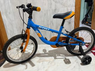 Bicicleta infantil B-Pro de color azul y naranja, ideal para los más pequeños. Esta comprada en el corte inglés nueva me costó 100€ aprox (foto de la tienda al final del anuncio) y mi hijo nunca la ha usado. - Ruedines incluidos. - Diseño llamativo. - Frenos de mano.