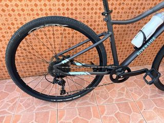 Bicicleta de trekking Riverside 900, ideal para tus aventuras. ruedas graves 38 mm , cubiertas 700 se pueden montar cubiertas carretera y disco , suspensión 63 mm , precio nueva 649 euros - Cuadro de aluminio. - Suspensión delantera. - Frenos de disco. - Cambio Shimano