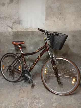 Bicicleta Specialized, ideal para paseos. - Color marrón oscuro. - Cesta delantera. - Sillín de cuero - Reflectores en las ruedas. - Cambios shimano deore -Talla L