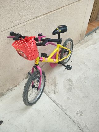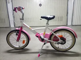Bicicleta infantil de 16 pulgadas, ideal para los más pequeños. Su diseño combina el blanco del cuadro con detalles en rosa. - Ruedas de 16 pulgadas en perfecto estado. - Guardabarros delantero y trasero. - Cubre cadena - Sillín en perfecto estado. - Ruedines/palo disponible. - Negociable.