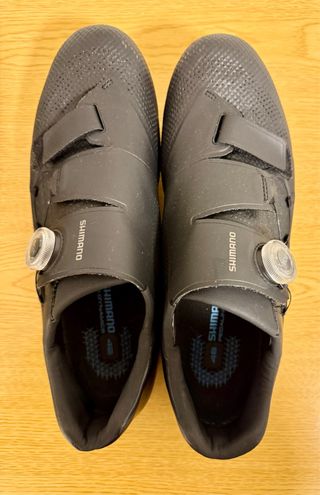 Zapatillas de carretera para bicicleta, de la marca Shimano, modelo R065L. - Talla: 45 (28,5cm) - Cómodo ajuste y soporte perfecto. - Las dos correas de gancho y bucle proporcionan comodidad y soporte confiables. - Suela de nylon reforzada con fibra de vidrio ligera. - Ciclismo de uso interno compatible SPD y SPD SL compatible. - Plantilla plana Precio Original: 189,99€ Como nuevo, usadas en 6 salidas.