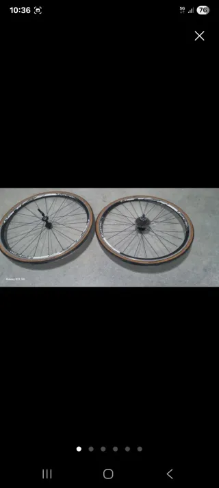 Ruedas de carretera con llantas Syncros. - Llantas de aluminio. - Neumático de color marrón.