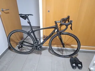 Bicicleta de carretera de carbono con un diseño deportivo y elegante. Talla M en perfecto estado - Cuadro de carbono ligero. - Ruedas de alto rendimiento. - Frenos de disco.