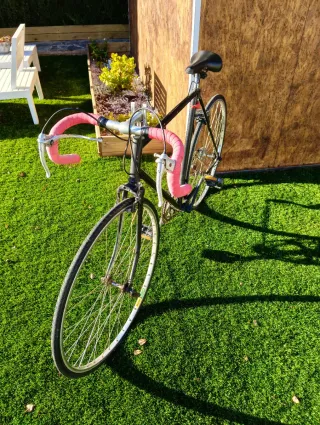 Bicicleta de carretera clásica, una edición limitada con un diseño italiano. - Cuadro de color negro. - Manillar y cinta de manillar de color rojo, está en buen estado.