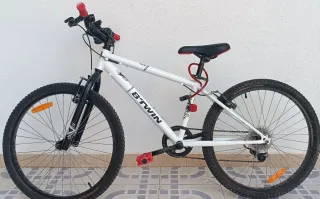 Bicicleta infantil de la marca B'TWIN, ideal para los más pequeños. - Color blanco con detalles en rojo. - Ruedas de 24 pulgadas. - Frenos delanteros y traseros. - Sillín ajustable.