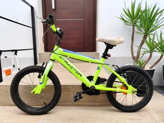 Bicicleta infantil de 16 pulgadas Prestodge Atractor de Decathlon. - Color verde lima con detalles azules. - Ruedines incluidos. - Cubierta delantera y cámaras delantera+trasera recién cambiadas.