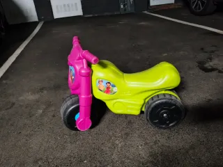 Moto correpasillos de color verde y rosa, ideal para niñas. - Diseño inspirado en una moto. - Ruedas de plástico resistentes. - Manillar rosa con puños. - Asiento ergonómico.