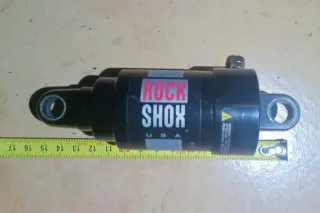 Amortiguador de aire Rockshox Bar, se quitó funcionando perfectamente pero hace tiempo, posiblemente necesite mantenimiento, 125mm. entre orificios
