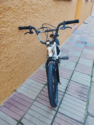 Bicicleta BMX de color blanco, lista para usar. - Ruedas de 20 pulgadas. - Manillar de BMX.