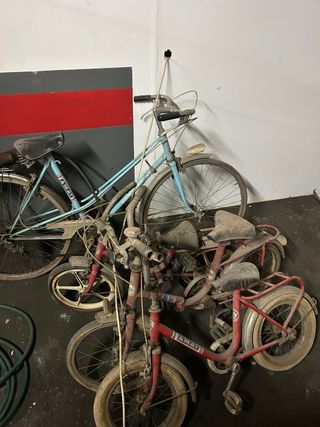 Dos bicicletas antiguas, ideales para proyectos de restauración. - Bicicleta azul estilo clásico. - Bicicleta roja pequeña. Se escuchan ofertas.