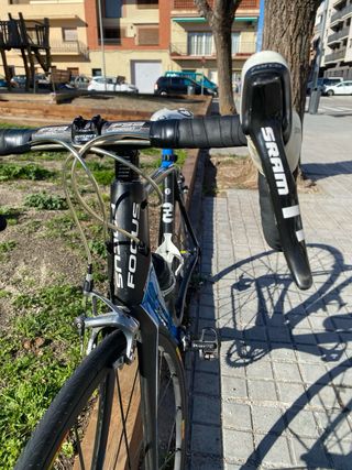 Focus Cayo 2011-2012 Inner Routing Talla L Cuadre de Carbono (High Modulus) Sistema Liquid Shape Design Horquilla Evo 6th Element Carbok Fork Pes 7,4kg Cambis i plat: Sram Force 10 velocitats Plats: 50/36T Compact Rodes: Mavic Ksyrium SLR (no son les de fàbrica, son millors) Neumatics Mavic Yksion Pro Griplink Estat bici: casi perfecte, només sillin desgastat. Pastilles de frè s'haurien de cambiar, grinyolen en forta pendent. Bici Ideal per entrenament de fons/curses