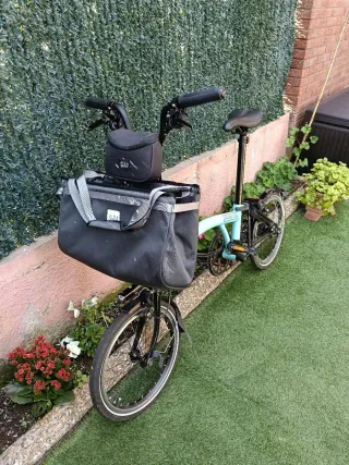 -Portabultos delantero para bicicleta Brompton. Dos bolsas porta todo una grande y otra pequeña independientes. -Inflador de ruedas -6 Velocidades - Carga máxima: 10 kg. - No apto para portabebés. - Modelo: QFCBA. - Norma: ISO 11243:2016.