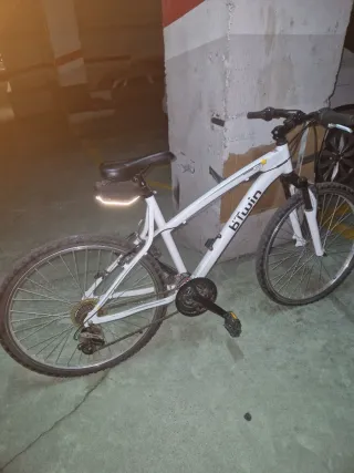 Bicicleta de montaña Btwin en color blanco. Ideal para paseos y rutas. - Cuadro de aluminio. - Ruedas de 26 pulgadas. - Cambio Shimano.