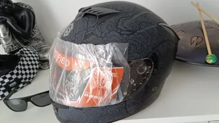 Casco de moto talla S, completamente nuevo a estrenar. Diseño moderno con detalles gráficos. - Talla S - Nuevo sin usar - Visor integrado - Diseño gráfico