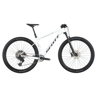 Bicicleta de montaña Scott Scale 910 en color blanco. - Cuadro de carbono. - Ruedas de 29 pulgadas. - Frenos de disco Shimano MT401 -Grupo Sram SRAM Eagle 70 Transmission 12 Speed - Horquilla de suspensión delantera FOX 32 Float Rhythm Grip.3-Modes