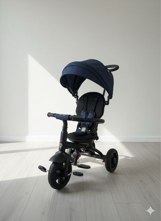 Triciclo marca Rito, versátil y adaptable a diferentes etapas. - Diseño 3 en 1. - Capota para protección solar. - Cinturón de seguridad. Nuevo con 1 solo uso, 3X1 dependiendo de la edad, para manejarlo un adulto con su manillar y a medida que va creciendo se va desmontando por fases hasta que puede ser un triciclo que lleve el niño solo, Plegable para poder meter en el maletero del coche Con la caja original y manual de instrucciones