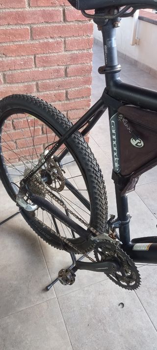 Bicicleta Cannondale Rush de carbono con lefty amortiguador trasero rock shock bloqueable manual, frenos xt , cambios sram x9, desviador xt, pedalier xtr 2x10. no incluye los pedales, desconches en la pintura (fotos) sin roturas ni fisuras, el cuadro esta garantizado de por vida, no tengo factura la he tenido en el trastero hasta hoy, lleva ruedas de 26, posible montar 27.5. si esta el anuncio esta en venta no negociable no cambio carbono en talla M el sillin esta a 76cm del pedalier y aun le queda (181cm).