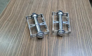 Conjunto de pedales y rastrales de la marca Campagnolo en muy buen estado con un par de retoques como nuevos eje de titanio Banesto mercks rossin look colección rolls kas pista velodromo clásico antiguo pinarello reynolds eroica colnago zeus vitus campagnolo motobecane Alan legnano Peugeot mercier romani banesto 3ttt calapies masi Peugeot - Material metálico plateado. - Diseño clásico para ciclismo.