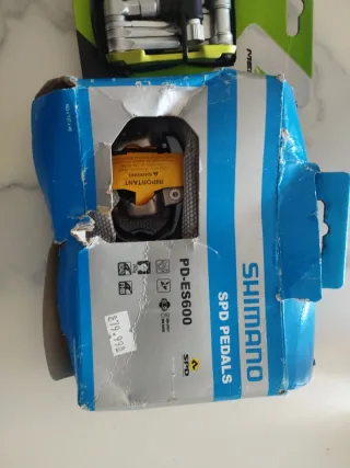 Se venden pedales Shimano SPD modelo ES600 junto con tres multiherramientas. - Pedales Shimano SPD ES600. - Tres multiherramientas para bicicleta.