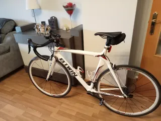 Bicicleta de carretera BTWIN CF 700 talla 55, ideal para entrenamientos y rutas. - Cuadro de carbono - Transmisión Shimano grupo 105. 10 velocidades .En muy buen estado.Meños de 8 kg , se entrega con pedales btt que lleva puestos