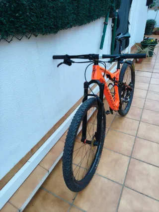 Preciosa bici Orbea de montaña de FIBRA DE CARBONO en NARANJA FLUOR. Orbea ZIC ADVANCED DYNAMICS 29 pulgadas talla M 12 marchas con varios extras echa al gusto y muy bien cuidada. -Doble suspension fox con botonera al manillar. -Potencia de aluminio en rojo. -Cambio de marchas y vielas sram gx. -Frenos hidraulicos Shimano Deore XT pinzas y manetas, -Discos Galfer 180mm y 3mm de grosor, (se entrega con purgación echa y pastillas nuevas). -Neumaticos Pirelli Scorpion MTB al 80% los dos, sin derrapes. -Juego de ruedas Mavic CROSSMAX -Tija telescopica DNM ASP con boton en el manillar. -Manillar fibra de carbono RITCHEY WCS. -Sillin Fibra de Carbono RITCHEY WCS -Tapa de direccion y alzador de Fibra de Carbono RITCHEY WCS. -Porta botellas de Fibra de Carbono RICHEY WCS. -Pedales naranjas MTB cuadrados para mas agarre. (Dos Salidas) Se entrega tambien un sillin y tija, un manillar de carbono, una potencia, un portabotellas mavic y unas calas Shimano Xt. Posiblidad de cambio.