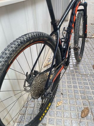 Bicicleta de montaña Scott Scale 925. - Cuadro de carbono. - Ruedas syncros x25 de 29 pulgadas tubelizadas. cámaras maxxis crossmax trasera y en delantera maxxis ardent - Horquilla Fox 32 float. - pedales shinano XT - Transmisión monoplato Sram Gx 12v 10-50T - Frenos de disco shimano.