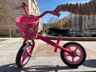 Bici sin pedales, para niñas, de color rosa. En buen estado (solo tiene pequeño desconchon en manillar, ver segunda foto). Para recoger en Alcorcon.