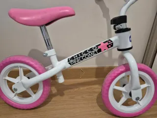 Bicicleta de aprendizaje de la marca Chicco, ideal para los más pequeños. - Color blanca,rosa y detalles morados. - Diseño sin pedales para facilitar el equilibrio. - Ruedas de goma. - Tiene poco uso,se puede ver en las ruedas que no tiene mucho desgaste. - precio original 40€.