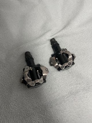 Par de pedales de cala Shimano para bicicleta. - Diseño en color negro y plateado.