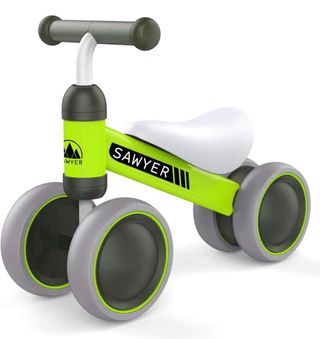 Bicicleta de equilibrio de color verde, ideal para que los más pequeños aprendan a montar. - Marco de color verde brillante. - Puños de goma para un mejor agarre. - Asiento negro. - Ruedas negras.