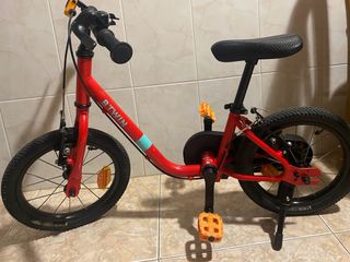 Bicicleta Btwin de 14 pulgadas, ideal para niños de 3 a 5 años. Su diseño en color rojo la hace muy llamativa. - Opción de quitarle los pedales y convertirse en bici de equilibrio. - Ruedas de 14 pulgadas. - Color rojo. - Marca Btwin. - Frenos revisados por especialista