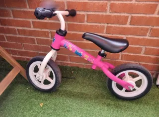 Bicicleta de aprendizaje para niños, ideal para iniciarse en el mundo de las dos ruedas. Su diseño sin pedales ayuda a desarrollar el equilibrio y la coordinación. - Color rosa. - Ruedas de goma. - Sillín ajustable en altura.