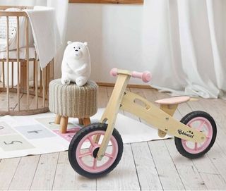 Bicicleta infantil sin pedales rosa.