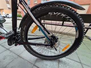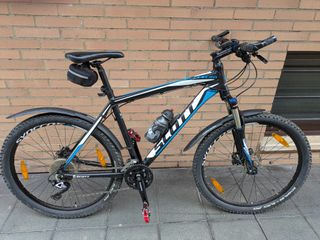 Scott Boulder en excelente estado mecánico, lista para rodar. Ideal si buscas una bici con componentes de calidad muy superiores a las gamas básicas actuales: - Transmisión: Shimano SLX/Deore (cambios muy precisos). - Frenos: Hidráulicos Shimano (potencia y seguridad). - Horquilla: SR Suntour XCR con bloqueo. - Ruedas: 26" Syncros con neumáticos Schwalbe. Incluye extras: cuentakilómetros, guardabarros, bolsa de herramientas, acoples y pedales de agarre. Siempre guardada en interior. Tiene marcas estéticas normales de uso, pero funciona perfecta. Precio nueva sin extras: 700€