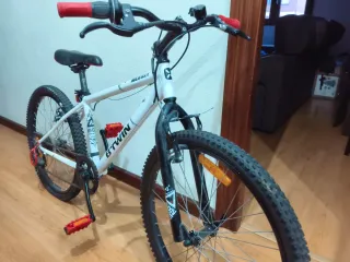 Bicicleta Btwin en buen estado, ideal para niños de entre 7 y 11 años. - Color blanco y negro. - Pedales rojos. - Puños rojos.