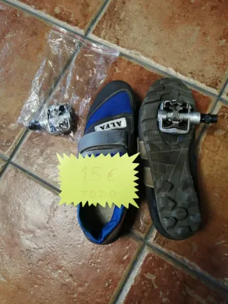 Se venden zapatos de ciclismo con pedales automáticos. - Talla: 45 - Marca: Alfa - Incluye pedales automáticos - Cierre de velcro