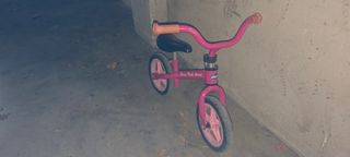 Bicicleta sin pedales para bebés de la marca Juguetos. Está en buen estado, aunque tiene algunas marcas de uso. - Ideal para que los más pequeños desarrollen el equilibrio y la coordinación. - Color rosa. - Asiento negro.