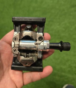 Pedales Shimano SPD usados, en buen estado. Son dos pedales. - Marca: Shimano. - Modelo: SPD. - Se muestran señales de uso.