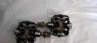 Pedales de bicicleta Shimano de montaña usados, pero en buen estado general. - Marca: Shimano - Tipo: MTB - Se venden 2 pedales.
